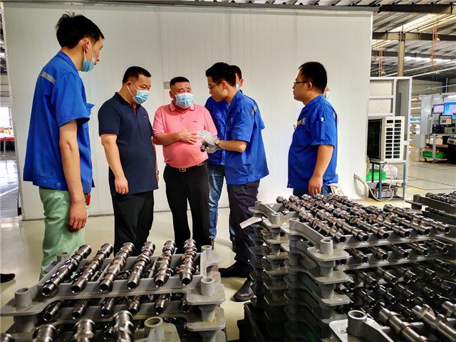 隨后,在公司領(lǐng)導(dǎo)的陪同下,考察組成員們先后走入中汽成配乘用車凸輪軸車間、裝配式凸輪軸車間、熱處理車間、商用車凸輪軸車間現(xiàn)場觀摩車間生產(chǎn)管理情況。考察組對車間內(nèi)現(xiàn)代化的生產(chǎn)模式、科學(xué)化的經(jīng)營管理、整潔有序的生產(chǎn)現(xiàn)場表示了肯定。
