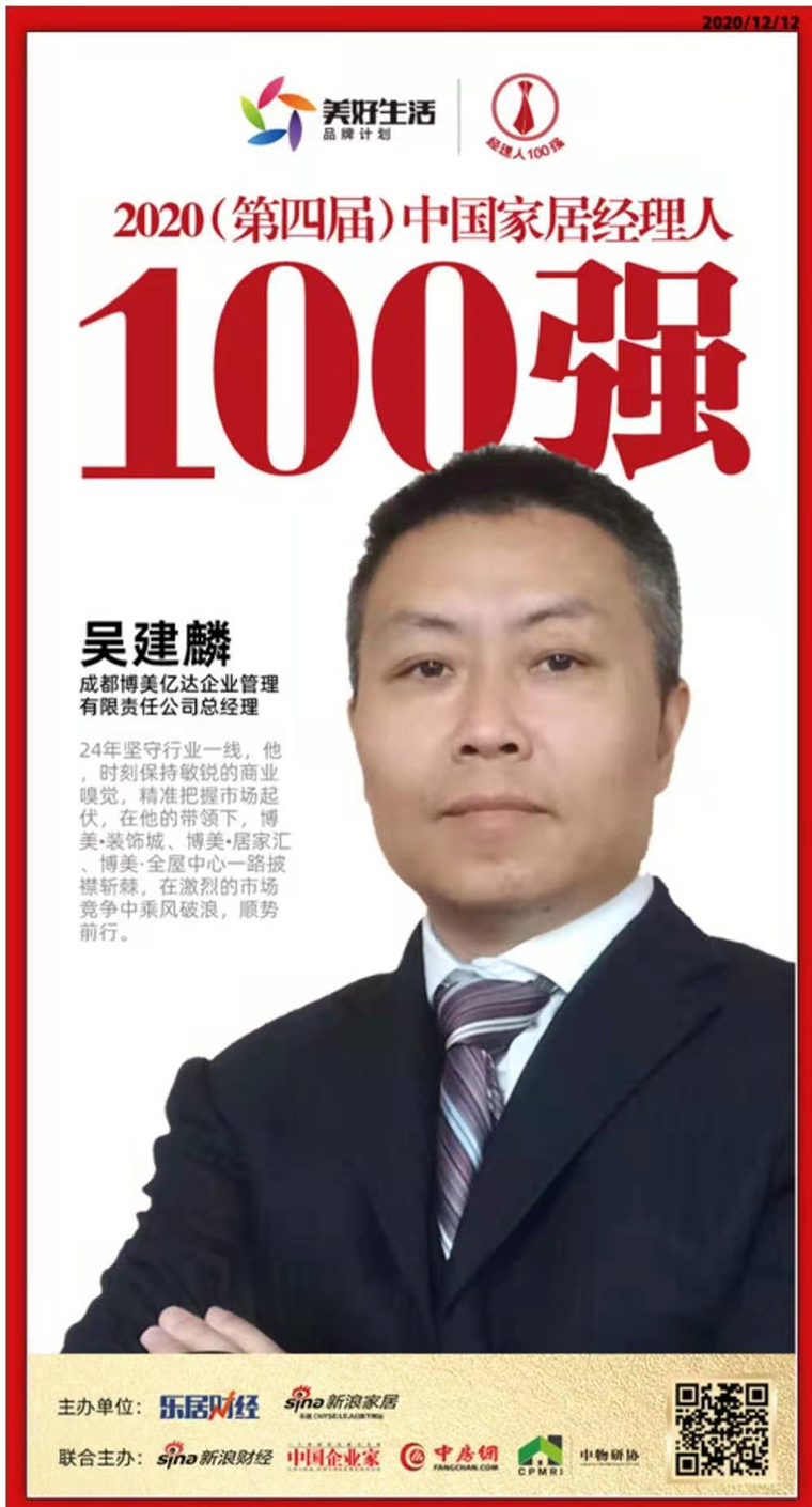 博美總經(jīng)理吳建麟榮獲2020中國家具經(jīng)理人100強(qiáng)