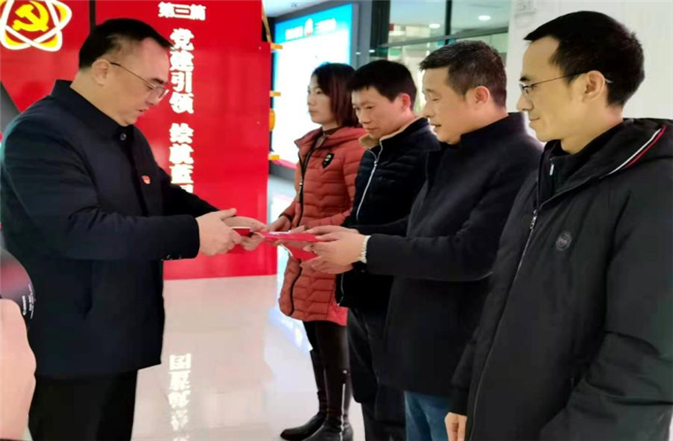 何偉書記為新黨員發(fā)放了《黨章》,佩戴了黨徽。
