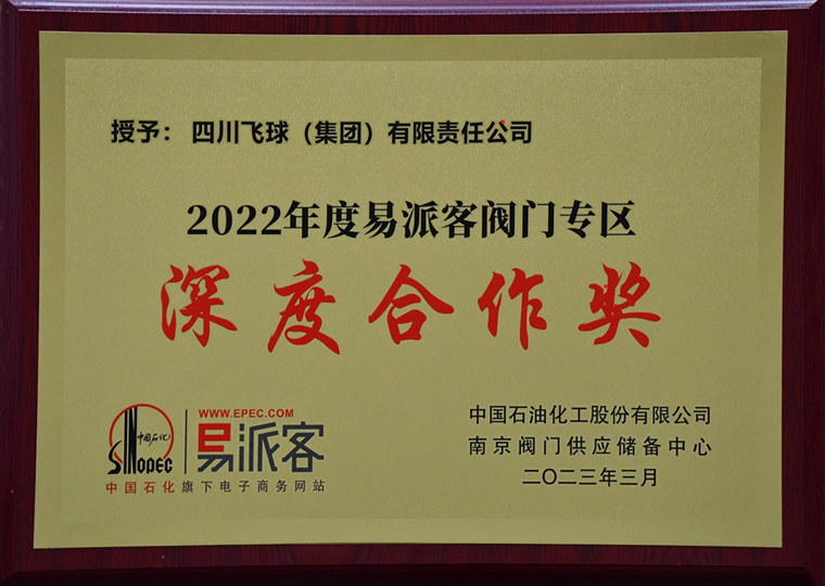 本網(wǎng)訊(彭奇報道)2023年3月2日至3日,在易派客閥門專區(qū)成立五周年總結(jié)會暨第一屆閥門產(chǎn)業(yè)鏈采購共享年會上,四川飛球(集團(tuán))有限公司(以下簡稱四川飛球)再次榮獲了“優(yōu)秀閥門供應(yīng)商”和“深度合作獎”兩大獎項,這也是四川飛球閥連續(xù)5年獲此殊榮。由中國石油化工股份有限公司南京閥門供應(yīng)儲備中心主辦的本次會議,有來自中國通用機(jī)械工業(yè)協(xié)會、美國石油學(xué)會(API)、中國石化物裝(國事)電儀部、中國石化易派客電子商務(wù)有限公司、中石化上海工程有限公司、中石化寧波工程有限公司、四川飛球等單位以及全國各大閥門企業(yè)、執(zhí)行機(jī)構(gòu)生產(chǎn)企業(yè)參加會議。