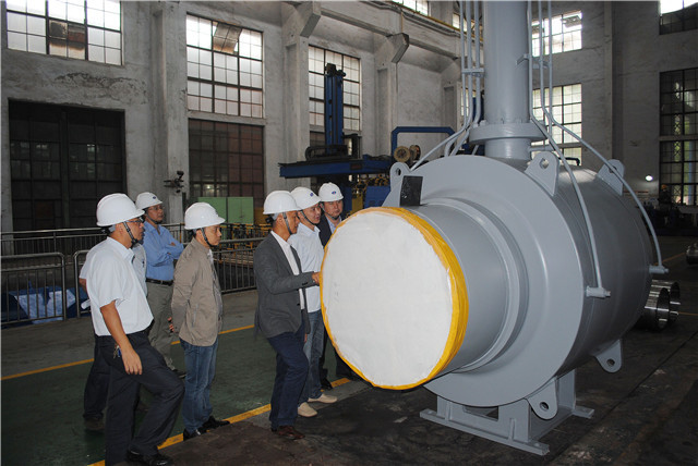 在曹總,副總經(jīng)理姚兵、魯健的陪同下,客商首先參觀了中國球閥的發(fā)源地,矗立在公司花園中的中國首臺氣液聯(lián)動PN80-DN1000鑄鋼大口徑球閥。