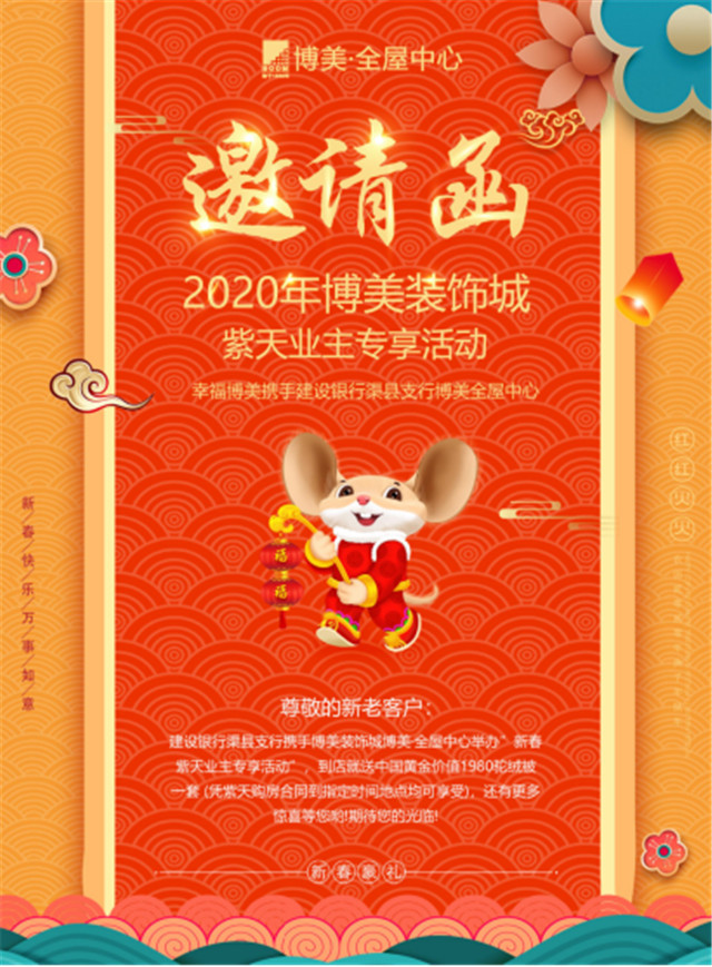 為了消費(fèi)者溫馨舒適的家,“博美?全屋中心”配備了優(yōu)秀的銷售、設(shè)計(jì)、施工、交付及金融服務(wù)團(tuán)隊(duì),同時(shí)攜手建材家居行業(yè)多家實(shí)力品牌廠家和施工企業(yè),為消費(fèi)者提供全面、高效、優(yōu)質(zhì)、省時(shí)、省心的“一站式”消費(fèi)服務(wù)。為慶祝開業(yè),“博美﹒全屋中心”渠縣店開業(yè)鉅惠,聯(lián)合建設(shè)銀行渠縣支行為客戶提供專享金融服務(wù),幸福博美與您一起過福年。